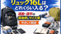 16Lリュックはどれくらい入る?通勤・通学の荷物例をもとに収納力やサイズ感をやさしく解説。女性・男性問わず日常使いに適した容量やメリット・デメリット、選び方のポイントもわかりやすく紹介します。